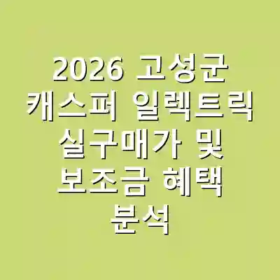 2026년 고성군에서 출시된 캐스퍼 일렉트릭은 2천만 원대의 실구매가와 100만 원의 보조금 지원으로 소비자들에게 큰 매력을 제공합니다. 차량의 품질과 디자인은 높은 소비자 만족도를 이끌어내고 있으며, 구매 시 주의할 점들을 사전에 숙지하면 더욱 효과적인 구매가 가능합니다.