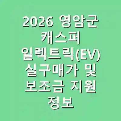 2026 영암군 캐스퍼 일렉트릭(EV)은 혁신적인 디자인과 뛰어난 성능으로 주목받고 있습니다. 보조금 지원을 통해 구매 부담을 줄이고, 경제적인 이점을 누릴 수 있는 기회입니다. 이 정보를 통해 보다 스마트한 차량 구매 결정을 내릴 수 있기를 바랍니다.