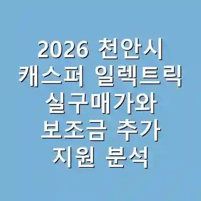 2026년 기준으로 캐스퍼 일렉트릭의 실구매가는 약 2천만 원대입니다. 더불어, 천안시에서는 전기차 구매를 지원하기 위해 100만원의 추가 보조금을 제공하고 있습니다. 이 보조금은 전기차 구매를 더욱 장려하여, 소비자들이 경제적인 부담을 덜고 친환경 차량에 투자할 수 있게 합니다. 따라서, 캐스퍼 일렉트릭은 합리적인 가격에 높은 품질을 제공하는 모델로 부각되고 있습니다.