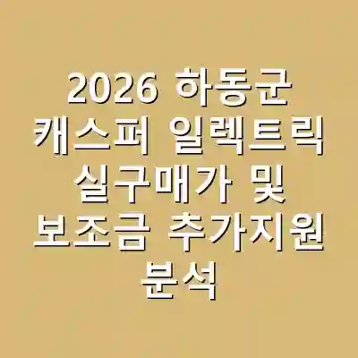 2026년 기준으로 캐스퍼 일렉트릭의 실구매가는 약 2천만 원대로 책정되어 있습니다. 하동군에서 제공하는 100만 원의 추가 보조금 지원은 소비자들에게 더욱 매력적인 구매 조건을 제공합니다. 이 지원금에 의해 소비자들은 실질적인 구매 부담을 경감할 수 있으며, 전기차 구매에 대한 결정을 더욱 쉽게 할 수 있습니다. 이러한 정책은 전기차 보급 확대에도 긍정적인 영향을 미칠 것으로 예상됩니다.